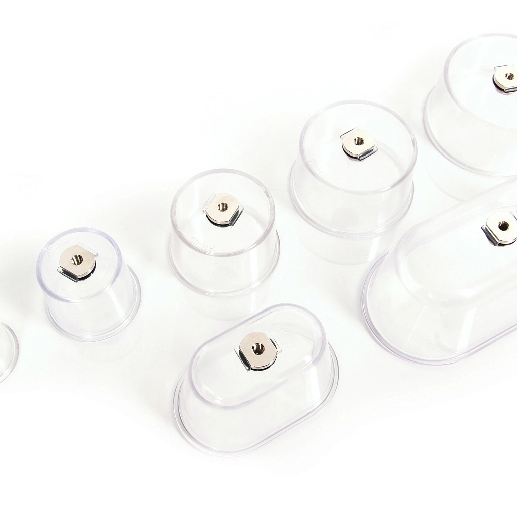 • 24 насадки (13 типов) – из прозрачного пластика, позволяют воздействовать на паравертебральные, крестцово-ягодичные, бедренные и другие зоны.